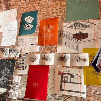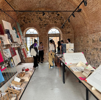 As part of the field trip, we also visited the exhibition held at Kurşunlu Han within the scope of Istanbul Bilgi University’s IND202 Studio / Entangling With The Han, Heritage / Critical Practices course. The studio and exhibition, conducted during the 2023-2024 Spring semester under the coordination of Bilge Bal and İdil Karababa, explored the han’s potentials for urban memory, production, and community-building, and examined the relationships between space, structure, and program through drawings, sketches, and models.